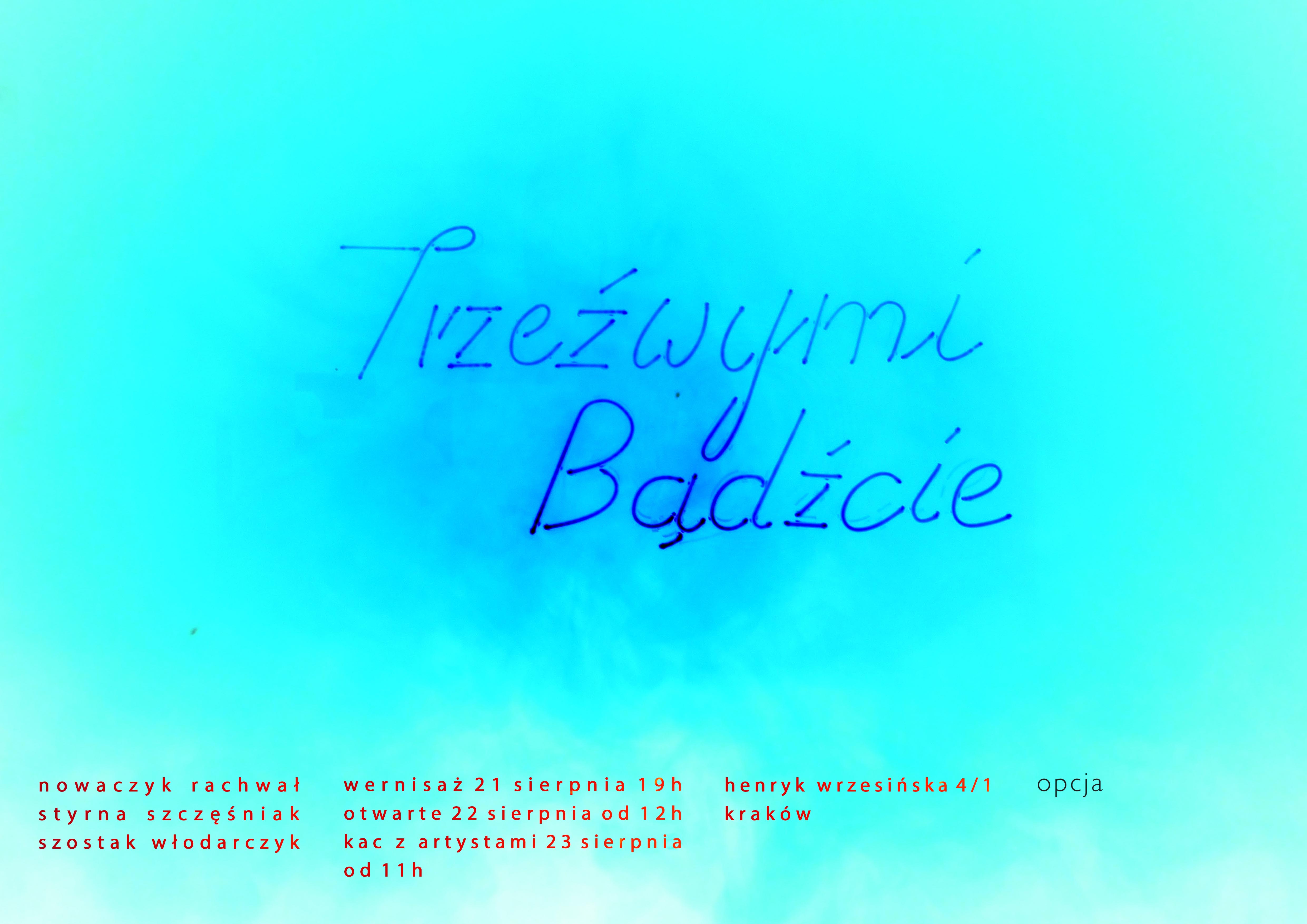Alkohol jest łatwo dostępny i tani. Błyszczy na ladach w sklepach dlań przeznaczonych. Poza walorami smakowymi, nie posiada wartości odżywczej. Bez alkoholu człowiek może żyć. Czyżby? Trunek jest niemym towarzyszem człowieka od początków cywilizacji. Uczestniczył wraz z nim w twórczych przemianach ludzkości, aktach kreacji, rewolucjach. Popychał go do szaleństw, bez których społeczeństwo dziś byłoby dużo zdrowsze, lecz prawdopodobnie duchowo opustoszałe. Alkohol to kompan sam w sobie, niewidzialny przyjaciel. W okresie dojrzewania, staje się pożądanym bodźcem gdy poszukujemy granic własnej tożsamości. Przetrwawszy ten utopiony w tanim winie czas, zamieniamy trunki na lepsze, mocniejsze zarazem a nasza więź z alkoholem staje się dojrzalsza. Nawiązujemy z nim dialog, prosimy go o wstawiennictwo w trudnym czasie, modlimy, rozstajemy się z nim w oparach rozpaczy, by znów powrócić do toksycznego związku. Tak wygląda perspektywa bliskości człowieka i używki. Jednak gdy popatrzymy na problem z dystansu nie sposób nie dostrzec tego, że choroba alkoholowa trawi nasze społeczeństwo od wieków. Choroba, która codziennie zabija kilkaset osób. Na drogach, pasach bezpieczeństwa, w domach. Choroba, która niszczy dzieciństwo, generuje patologię, ubóstwo. Wreszcie choroba, której symptomem jest zobojętnienie, popadnięcie w groźny stan niemocy twórczej. Problem istnieje. Dylemat twórcy związany z używaniem alkoholu, jego skutkami, walorami oczyszczającymi drażliwą duszę także. Zalewa nas fala „literatury alkoholowej”, fala rozliczeń, osobistych przeżyć twórców. Filmowcy pokazują nam obraz naszej pijańskiej natury. W jej najgorszym, najbardziej obleśnym wydaniu. Fundują nam terapię szokową, która wizualnie oddziałuje silniej niż nie jedna kampania społeczna. Twórcy sztuk wizualnych podejmując problem zarówno krytycznie jak i nie, mają na celu wywołania u odbiorcy czkawki. Chcą wzbudzić refleksję, rozpocząć dyskusje, dialog. O dialogu artysty i alkoholu jest wystawa grupy OPCJA, zatytułowana Trzeźwymi bądźcie.