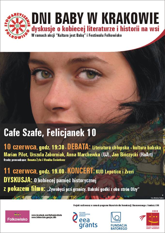 Literacka debata z udziałem Mariana Pilota, laureata Nagrody NIKE 2011, koncert knajpianej muzyki bałkańskiej i dyskusja o historii kobiet na wsi – Stowarzyszenie Folkowisko zaprasza na krakowskie Dni Baby. Tę niezwykłą serię imprez poświęconych kulturze kobiecej na wsi, w dniach 10-11 czerwca, gościło będzie słynne krakowskie Cafe Szafe (Felicjanek 10).