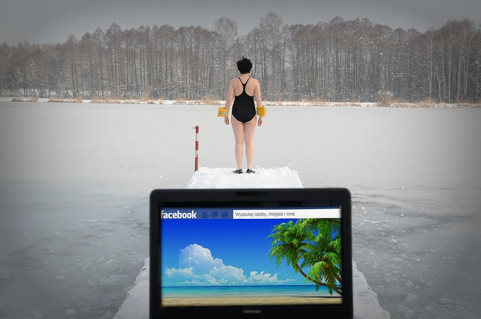 Chciałaby popływać z rybami, ale zawsze kiedy już się wystroi kąpielowo, nie zauważa lodu.