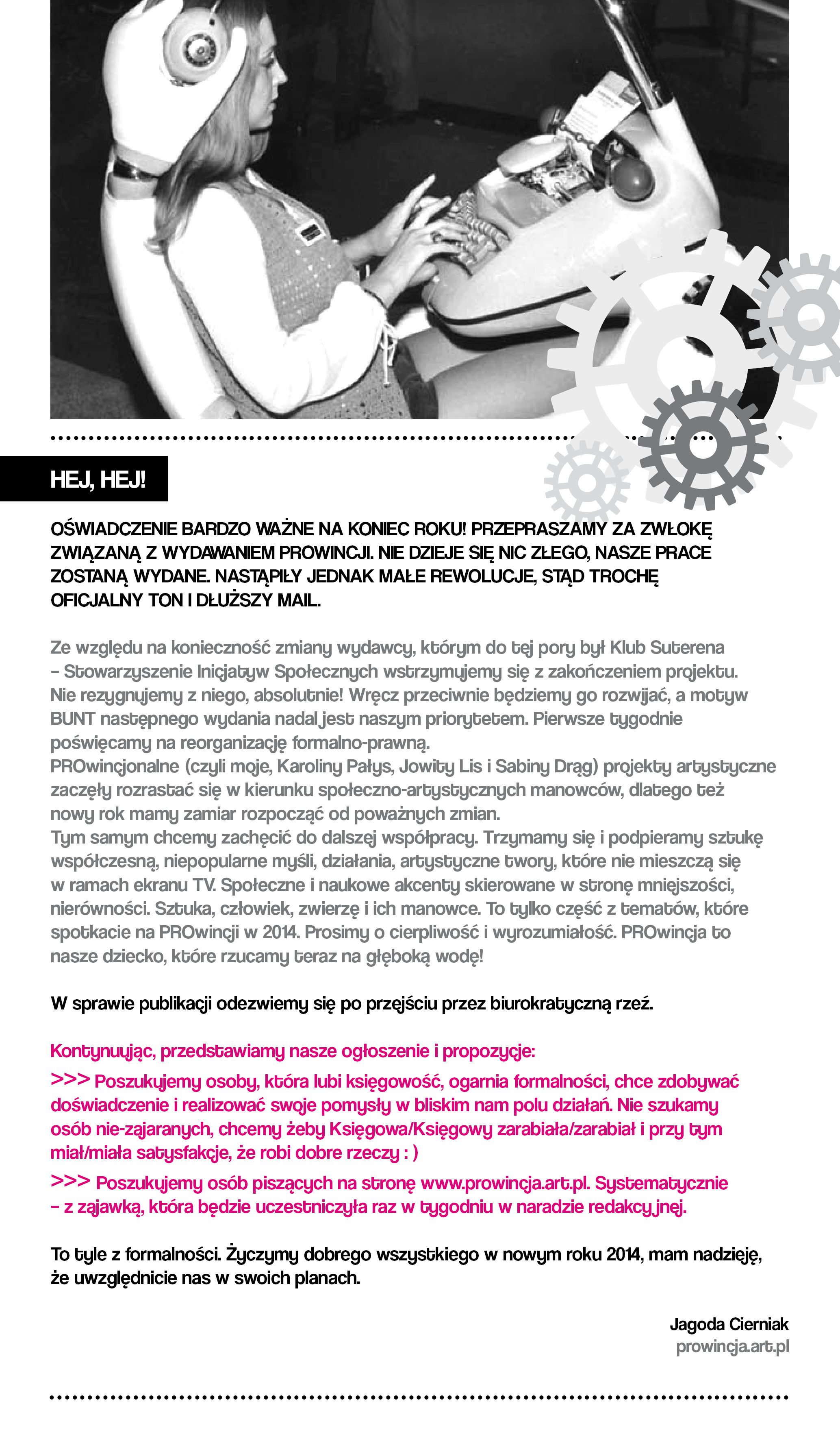 Słów kilka na koniec roku 2013 od redaktorek PROwicji. Nadchodzą zmiany, zbieramy siły na kolejną rewolucję reorganizacyjną. Minione miesiące dały nam dużo energii i potwierdzenie, że to, co robimy cieszy nie tylko nas, ale bardzo dużą liczbę Czytelniczek i Czytelników. Dziękujemy Współpracującym i Sympatyzującym >>>