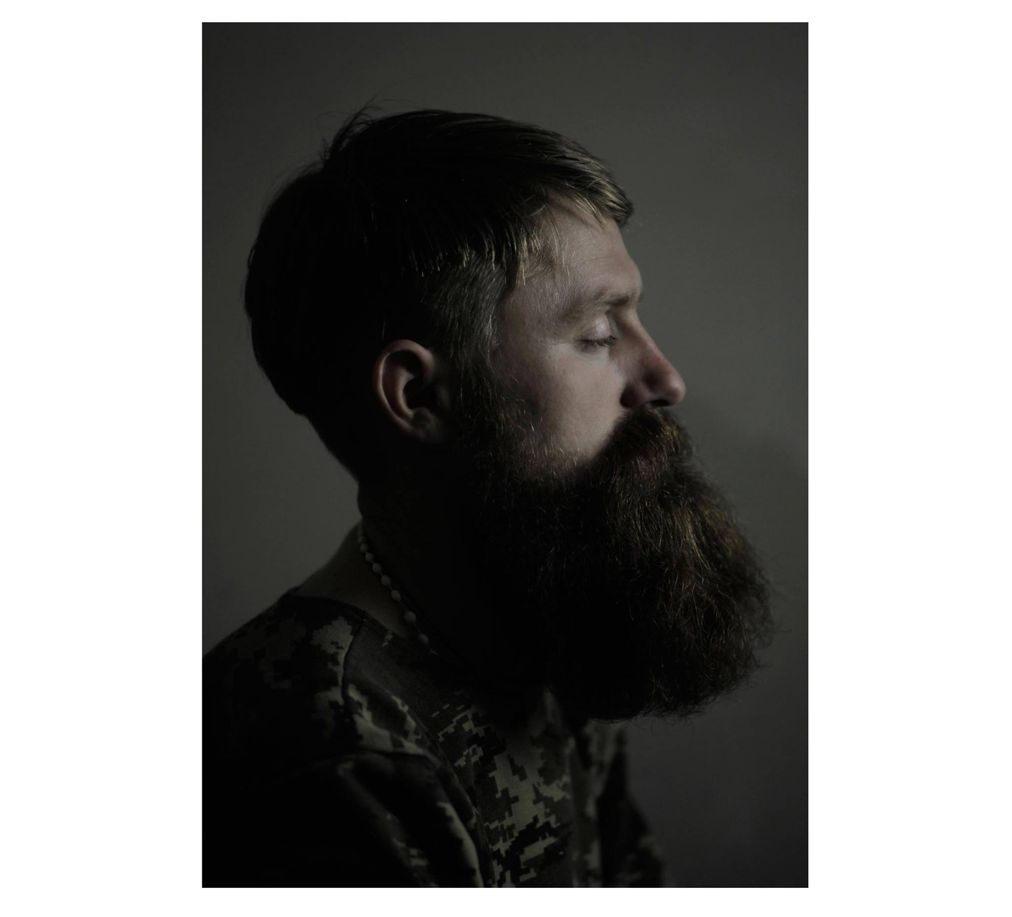 Wiktoria Wojciechowska, „Zamienił wiertarkę na karabin”. Na zdjęciu żołnierz Pietrov, baza wojskowa, Lysychańsk, Ukraina, marzec 2015.
