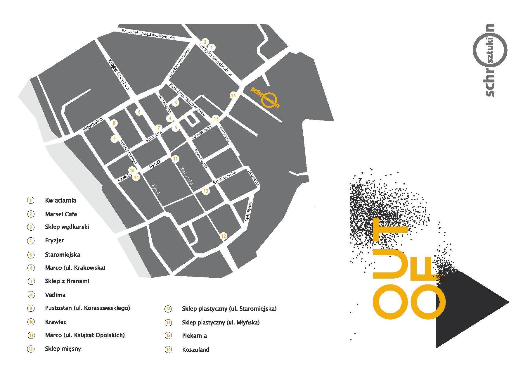 Tegoroczny projekt zakłada nowe, niekonwencjonalne zaprezentowanie sztuki współczesnej. Założeniem jest utworzenie sieci kilkunastu tymczasowych punktów wystawienniczych zlokalizowanych w ścisłym centrum miasta Opola. Chcemy wykorzystać witryny sklepowe, lokali usługowych jak i pustostany, które zamierzamy zaanektować na nowe przestrzenie ekspozycyjne i wykorzystać do prezentacji prac. Poruszanie się pomiędzy punktami wystawy będzie doskonała okazja do zwiedzenia miasta, poznania nowych miejsc, ale tez spojrzenia w inny sposób na miejsca Opolanom już znane.