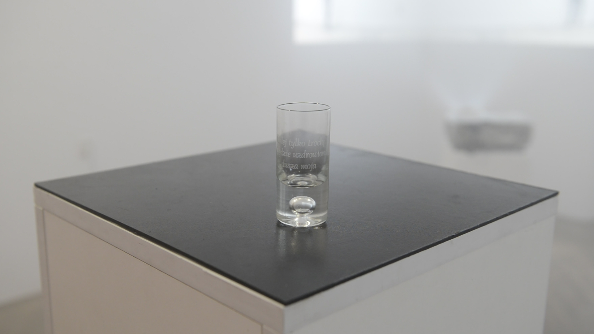 Iwo Rachwał w preformansie Alkoperformans (wykonywanym wraz z Wojciechem Gąsiorowskim), którego zapis wideo prezentuje na wystawie, odwołuje się do szeroko pojętych rytuałów związanych z piciem alkoholu, w których istotnym elementem jest zachowanie kultury gestu. Podobnie jak Maciej Szczęśniak w performansie do kamerowym Potyczka, zwracają uwagę na fizyczne oddziaływanie nadmiernej ilości wypitej wódki na nasze ciało. Maciej Szczęśniak podejmuje w nim wyzwanie, wykonując kilka ustalonych przez siebie prostych czynności fizycznych. Zestawia je w duecie, pokazując kontrast, jaki wybrzmiewa przed i po upojeniu. Dokonując dokumentacji swoich działań w stanie nietrzeźwości, konfrontuje się z tym widokiem po to by wysnuć wnioski dotyczące swego zachowania. Charakter dokumentacyjny ma także praca Eliasza Styrny, który po przebytej libacji wykonuje zdjęcia Polaroidem. Seria autoportretów zrobionych na kacu zatytułowana Katzenjammer, ma także mieć dla twórcy wymiar rozliczeniowy. Przyglądanie się sobie, jak w lustrze poprzez medium fotografii, oraz dokumentowanie swych złych stanów fizycznych, ma celu wzbudzenie refleksji nad trybem życia, który prowadzi. Jana Shostak oraz Jolanta Nowaczyk w swoich pracach zwracają uwagę na oczyszczający aspekt picia alkoholu. W ujęciu Jany Shostak jest to odniesienie to stanów skrajnych jakie temu towarzyszą, będącymi dla człowieka niemalże torturą. Jolanta Nowaczyk grawerując na kieliszkach: „Nalej tylko trochę, a będzie uzdrowiona dusza moja…”, odnosi się do mistycznego wymiaru picia alkoholu, który w jej ujęciu miałby być lekiem na zranioną duszę. Prace Jolanty Nowaczyk i Jany Shostak są przykładami ujęcia problemu w zdystansowany sposób, Jolanta Nowaczyk zaznacza silny kulturowo-religijny aspekt, Jana Shostak odnosząc się do chińskiej tortury, w której przeciwnik jest podtapiany, do psychologii – stanów mentalnych ludzi cierpiących z powodu choroby alkoholowej.
